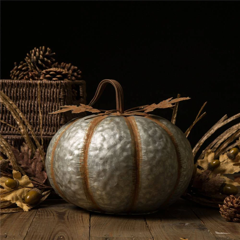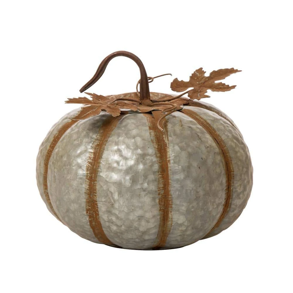 - Medium rustic iron galvanized pumpkin for fall and harvest season decor 9.5 in. H
