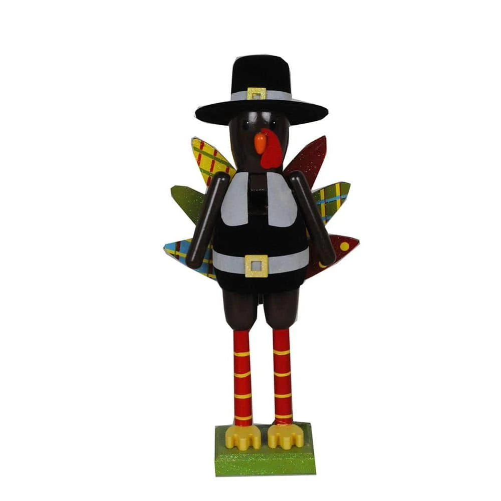 This colorful turkey nutcracker would be a great addition to any ones fall collection. He is all decked out with fall colors for feathers. He stands a wood base.
