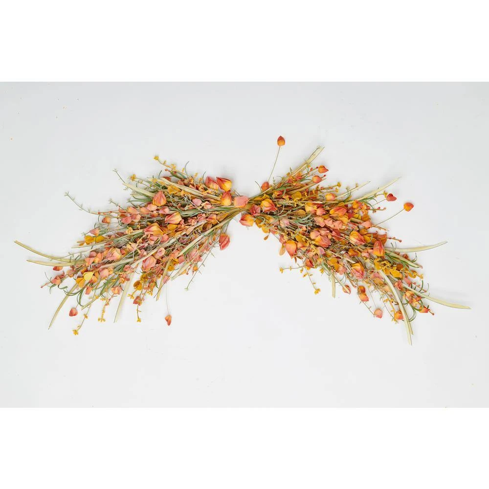 Welcome fall to your home with this gorgeous swag. It is detailed with Chinese lanterns, soft colorful petals and flowers. Perfect accent to any mantle or stairways.