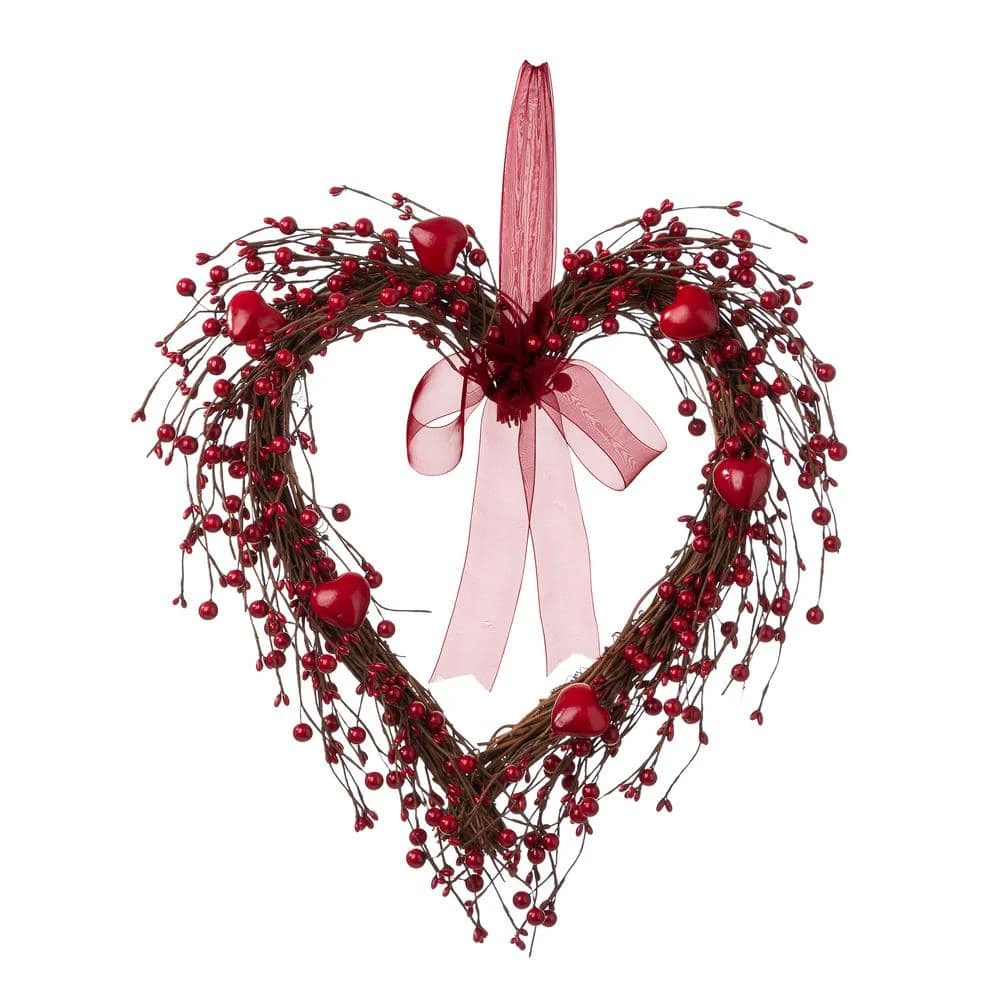 Bring lovely seasonal design to your home using this Berry Heart Wreath. The heart-shaped features a artificial arrangement of roundness and heart-shaped berries. Complete with charming addition such as red ribbons, it’s a wonderful touch to your Valentine’s Day.