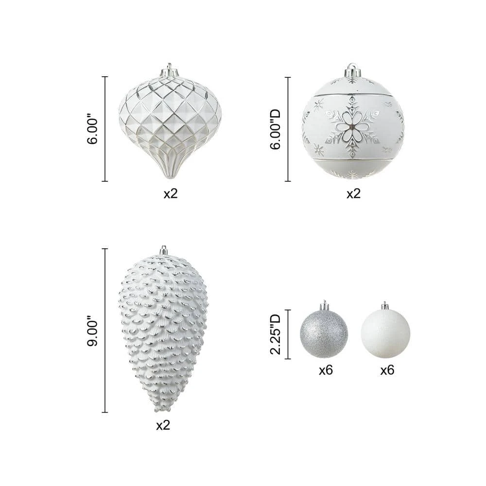 The Set of 18CT Christmas Elegant Silver Deluxe Large Shatterproof Ornaments with variety of sizes and designs decoration are perfect for Christmas tree and party decoration. It create an enchanting Christmas holiday wonderland and party joyous atmosphere. Add to the festive atmosphere.