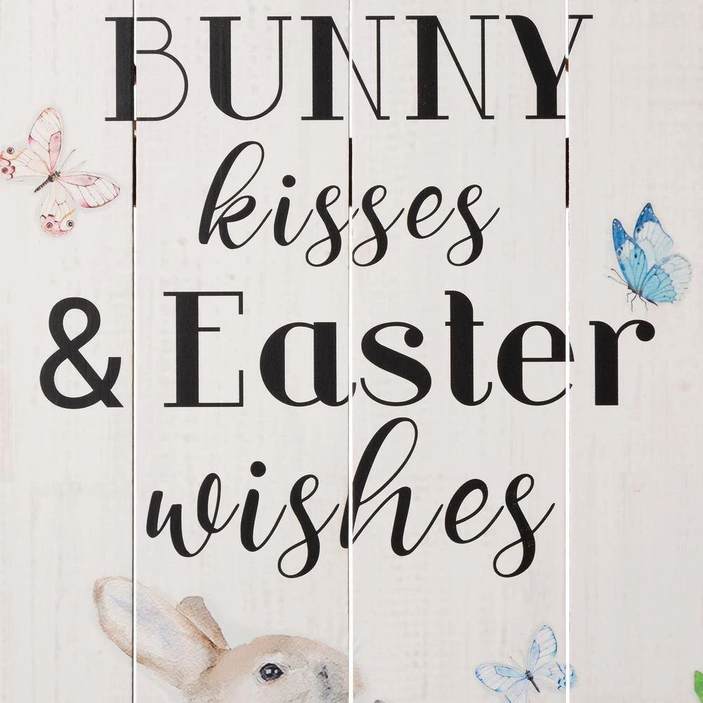 Start a journey though Easter with a creative spirit this season. The Bunny Wood Wall Sign features slatted, Bunny and Easter kisses wishes is written down the white panel front that is accented with 2 lovely bunnies, flowers and butterflies. Perfect for a master bedroom, living room, bathroom, feature wall or just about anywhere in your home.