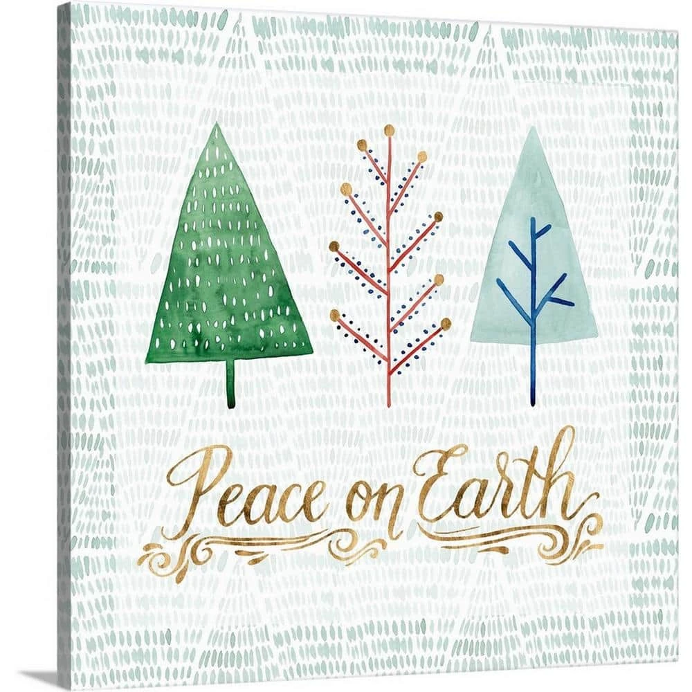 Solid-Faced Canvas Print entitled Christmas Tree Whimsy II . A trio of three colorful patterned Christmas trees with gold script. Our proprietary canvas provides a classic and distinctive texture. It is acid free and specially developed for our giclee print platforms. Each print is produced with our own archival UV quality inks supporting a vibrant color gamut, while being scratch and fade resistant. Each premium canvas gallery wrap is finished with a closed back preventing dust collection inside the back of the wrap. The back includes a pre-installed, ready-to-hang sawtooth hardware.