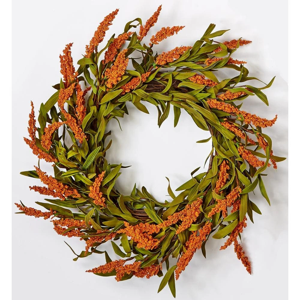 The Fall Spike on Natural Twig Base 22 in. Wreath is the perfect fall accent to your door or wall. Its all wired for easy shaping and to fluff as you like. Perfect accent to any Fall decoration.