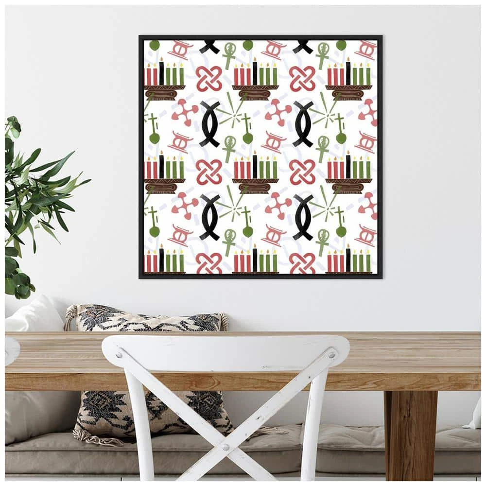 - Canvas is framed in a floated style that showcases a narrow gap between the edge of the gallery wrapped canvas and the frame, the wrapped canvas appears as if it is floating on the frame, the overall look is clean, modern and upscale