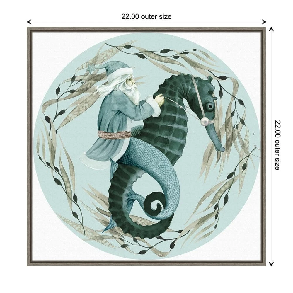 22 In. The Sea Santa Collection C Christmas Holiday Framed Canvas Box Wall Art