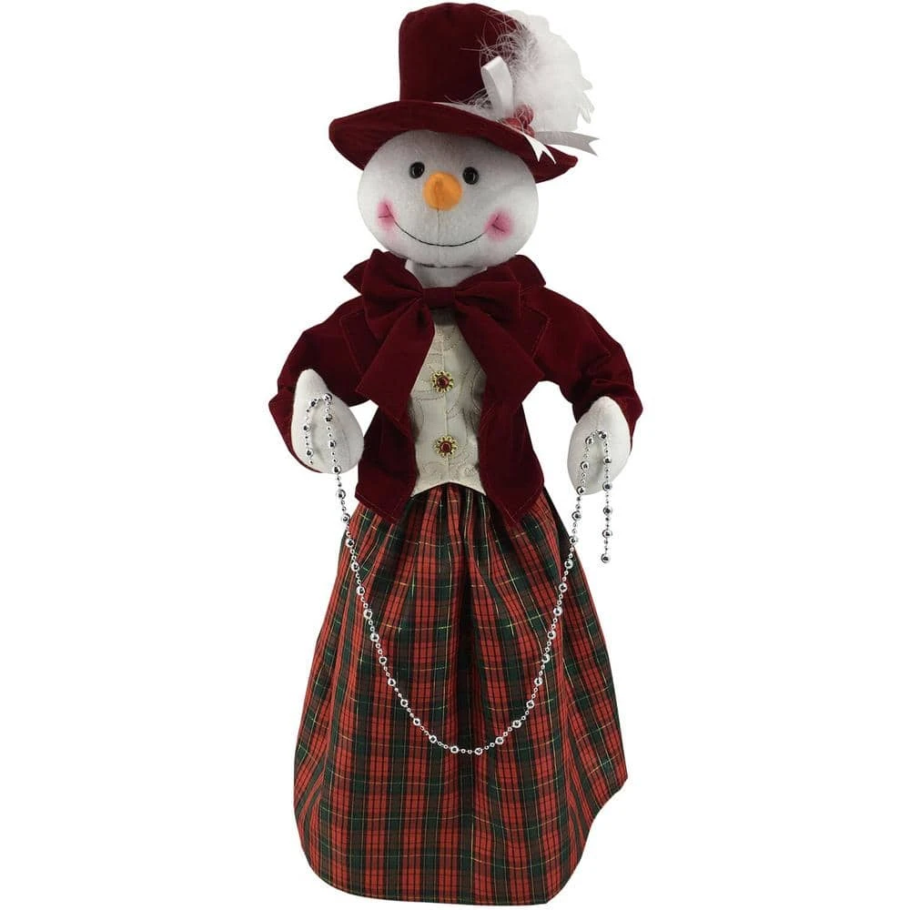 - Festive outfit: Mrs. Snowman is dressed in her most festive xmas outfit, featuring a long plaid skirt with a cordinating cap and jacket, she’s sure to complete your holiday decor