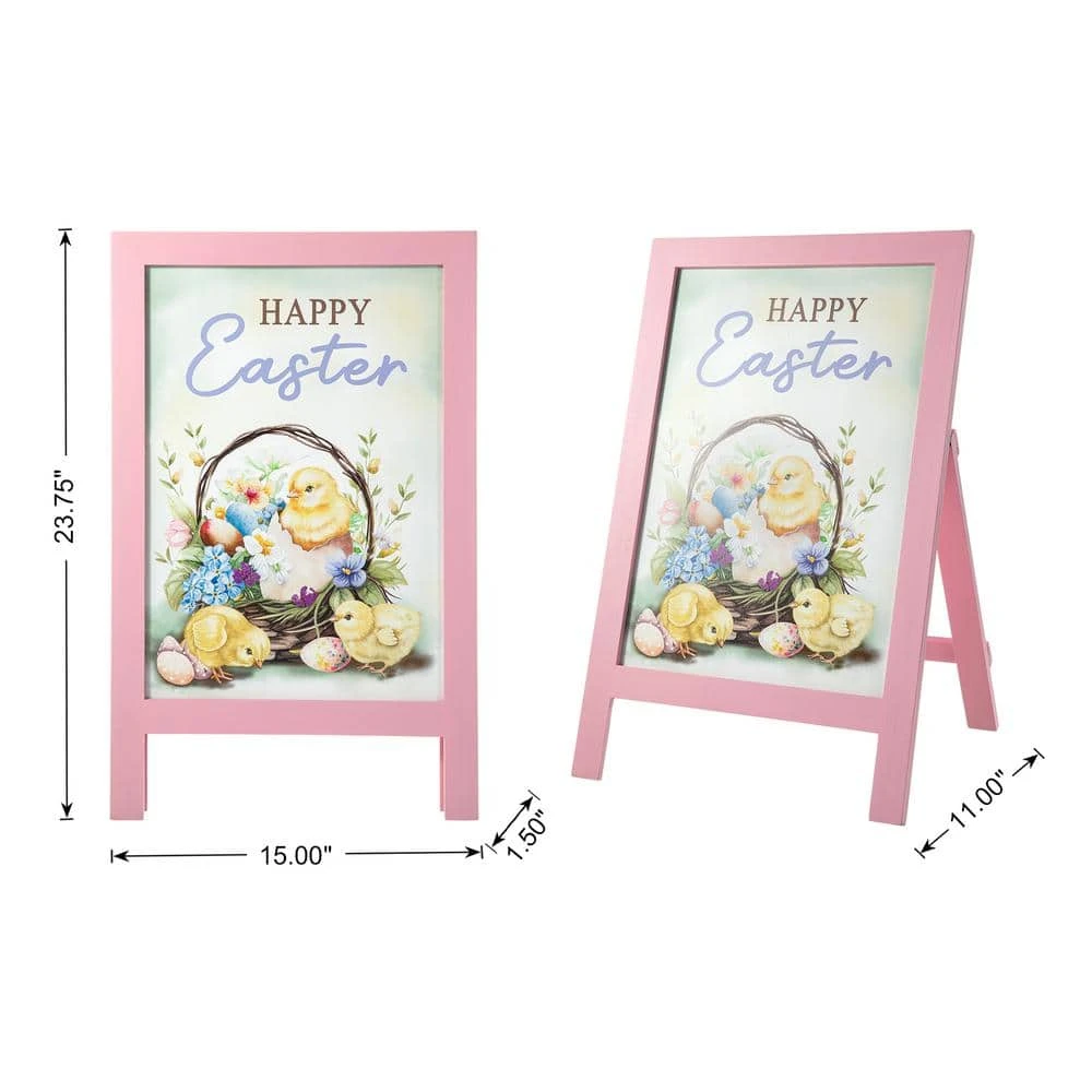 Decorate your porch or front door with this Easter Standing Easel Sign. Adorable printing floral surrrounding with the cute chicks. Soft white base panel with pink wooden frame is a perfect decor for EASTER.