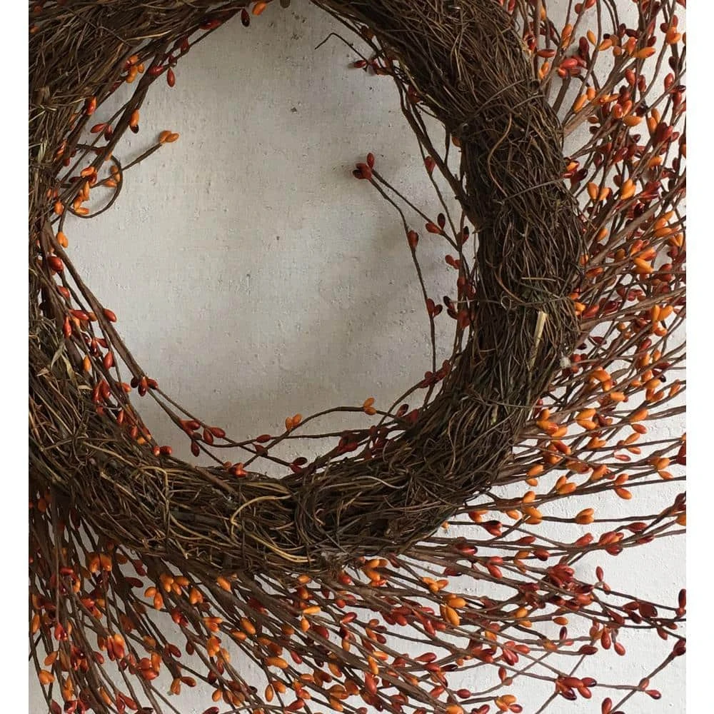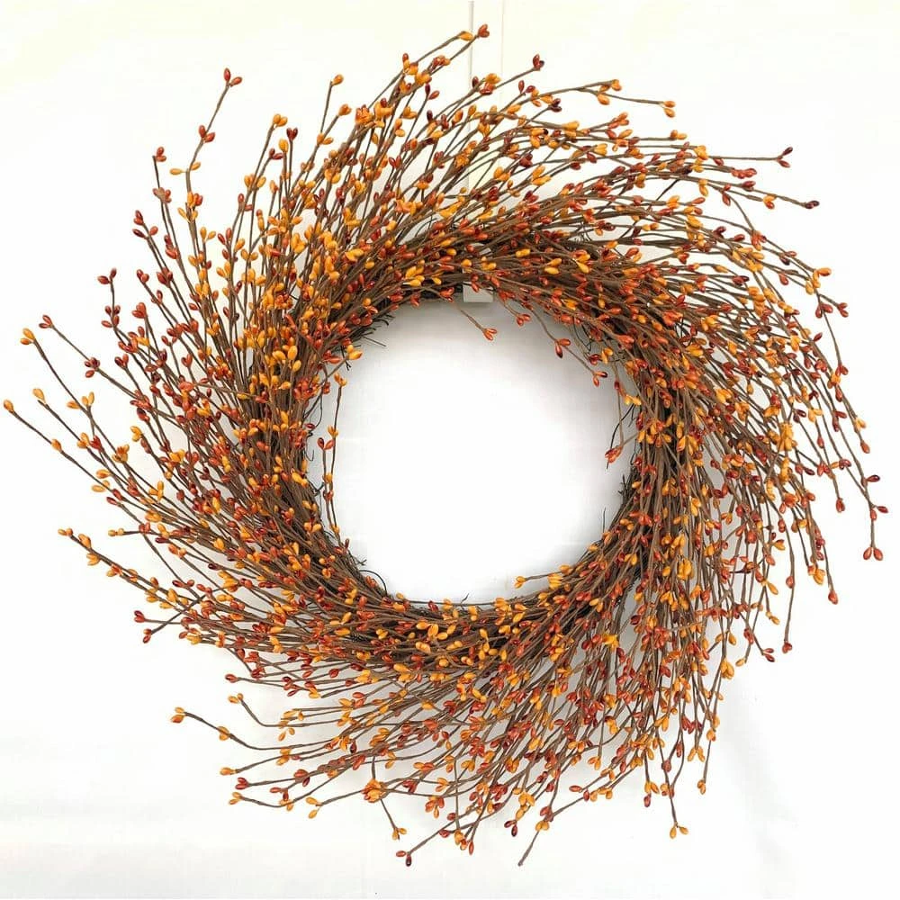 More than 3000 berries, with golden yellow and orange colors, set on a natural, thick grapevine wreath base. Its very special, Last for long years. Can be displayed for every year’s summer autumn Fall and harvest ,winter days.