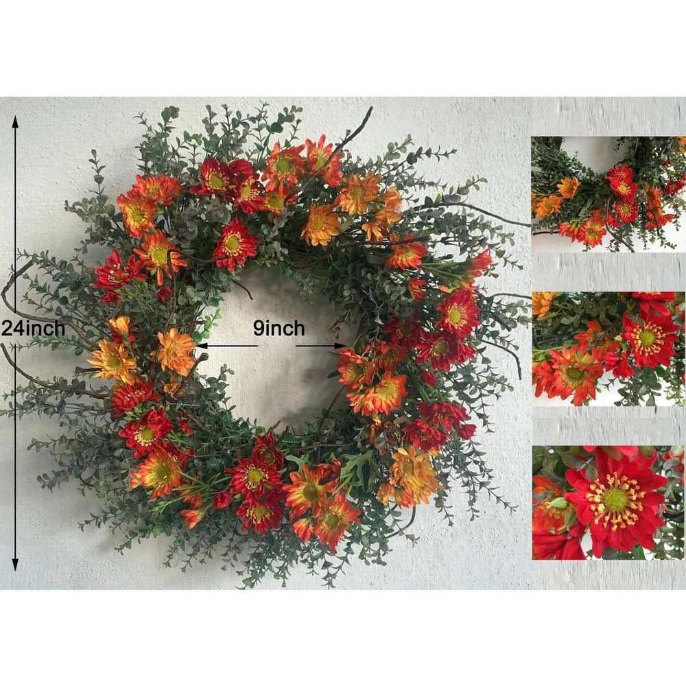 This multi-colorful wreath, handcrafted on a natural sturdy grapevine base with spring summer faux Daisy flower blossoms and surrounded by versatile boxwood green leaves. Its bright, also can last for all year round without fading. Decorate with this wreath will make your entryway more vibrant and attractive.