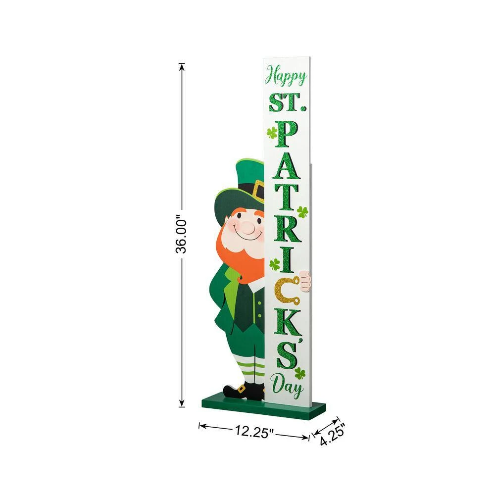 This 36 in. H St. Patrick’s Day Porch Decor showcases a charming leprechaun holding a sign that reads Happy St. Patrick’s Day. It’s erfect for adding a festive touch. It spreads joy and warmth during your celebrations.