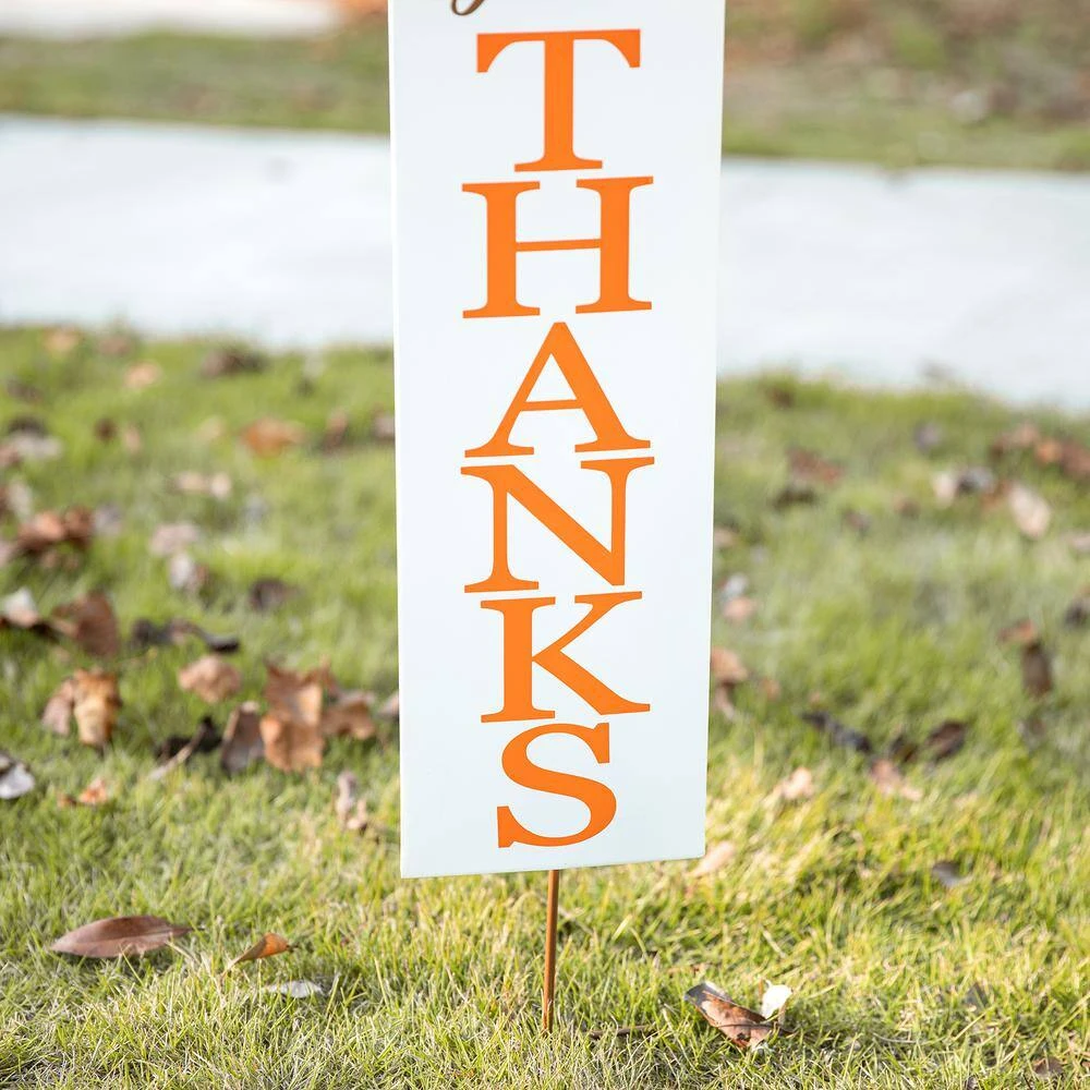 Give your garden an eye-catching autumn accent with iron turkey garden stake. Rustic details on the turkey, while a sign