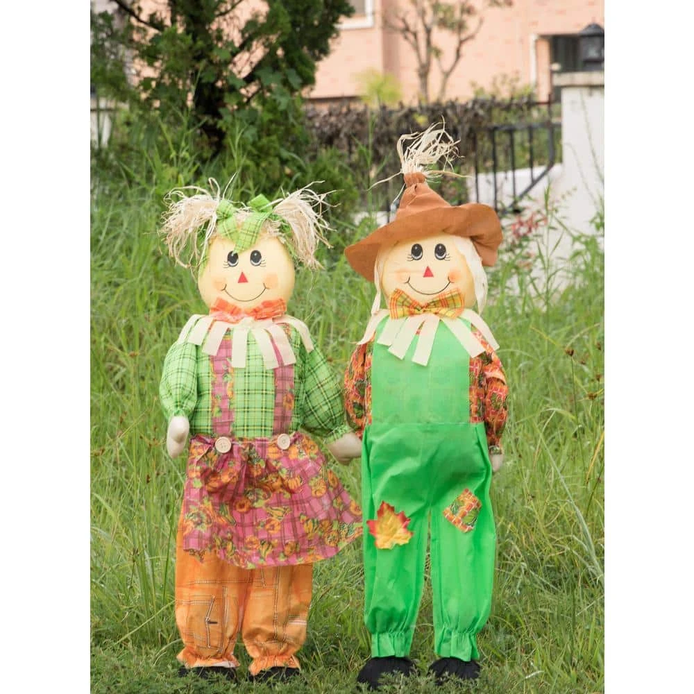 This stuff able scarecrow set is the perfect way to decorate Fall with vibrant autumn colors and patterns. Pose the figure on your porch or front yard for a festive harvest theme. These scarecrows will scare away unwanted garden guest but will decorate your garden in a fun fall theme all season long.