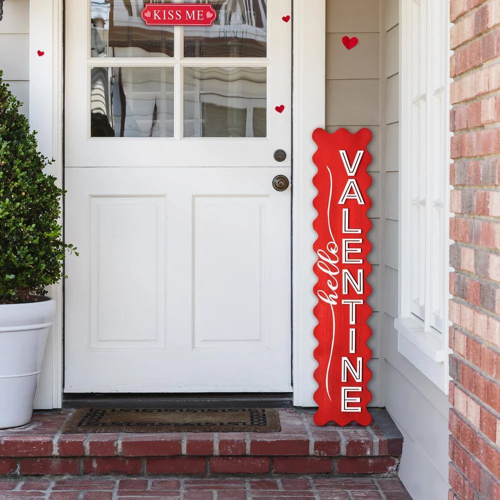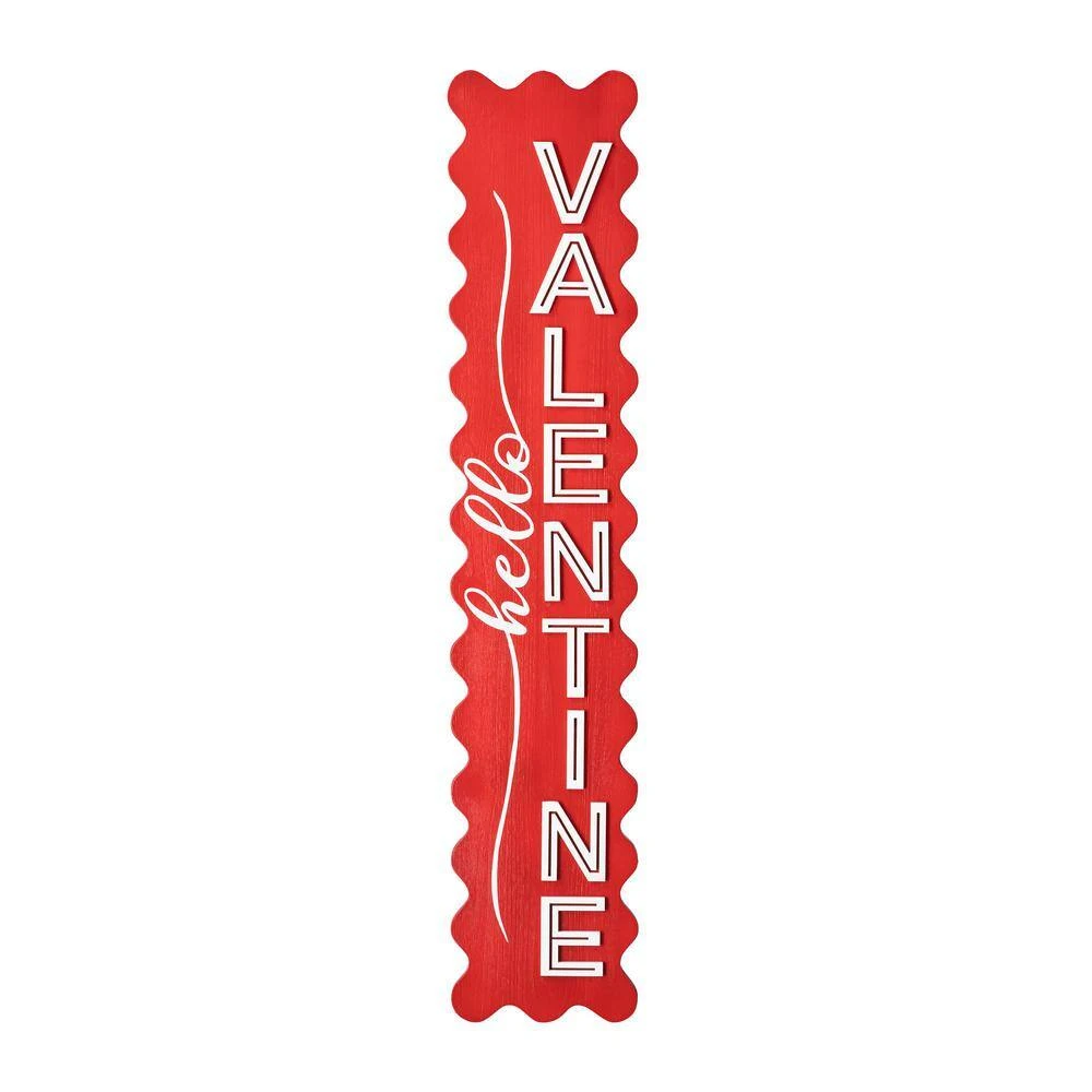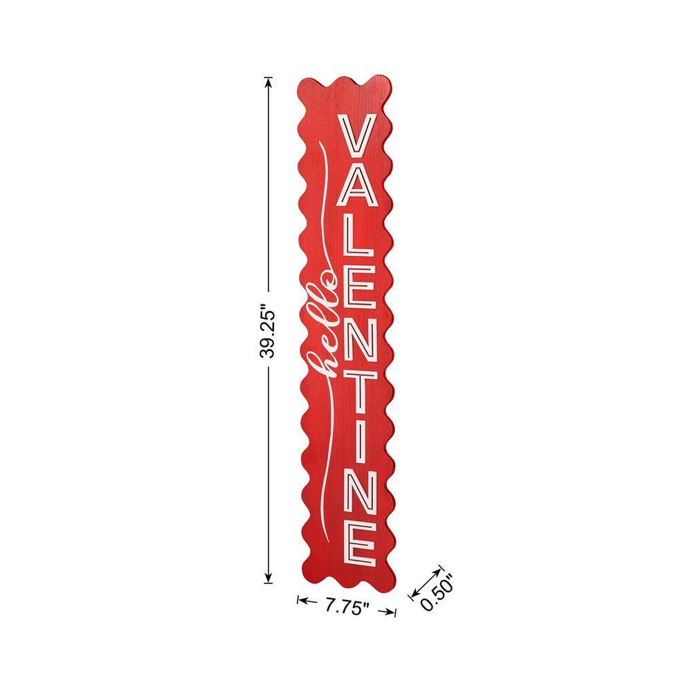 Celebrate Valentine’s Day with the delightful 39.25 in. H. Hello Valentine Red Wood Word Sign. It’s the perfect addition to your holiday decor. The bright red background with corrugated outline beautifully contrasts with the white 3D letters, creating a striking visual appeal.