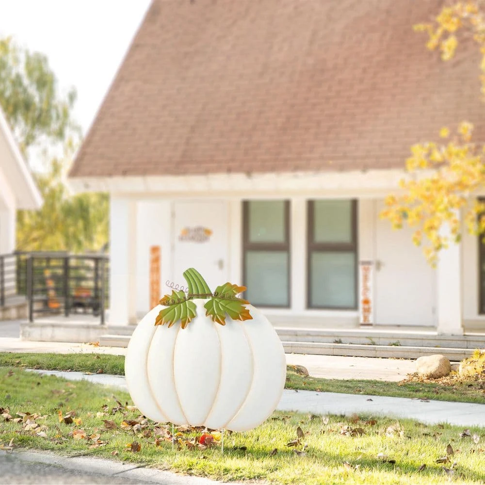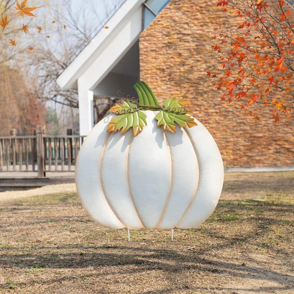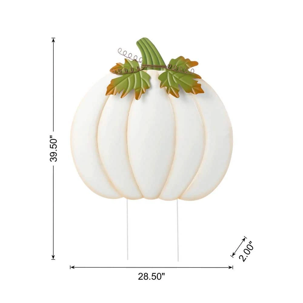 Are you looking for something special that can be used as outdoor ornaments in Fall. This 39.5 in. H Fall Oversized Metal Ivory Pumpkin Yard Stake will definitely be a perfect choice. Premium material with fine workmanship brings a smooth surface touch and ensures its durability and practicality. They can also be used as indoor wall decor as your creativity goes.