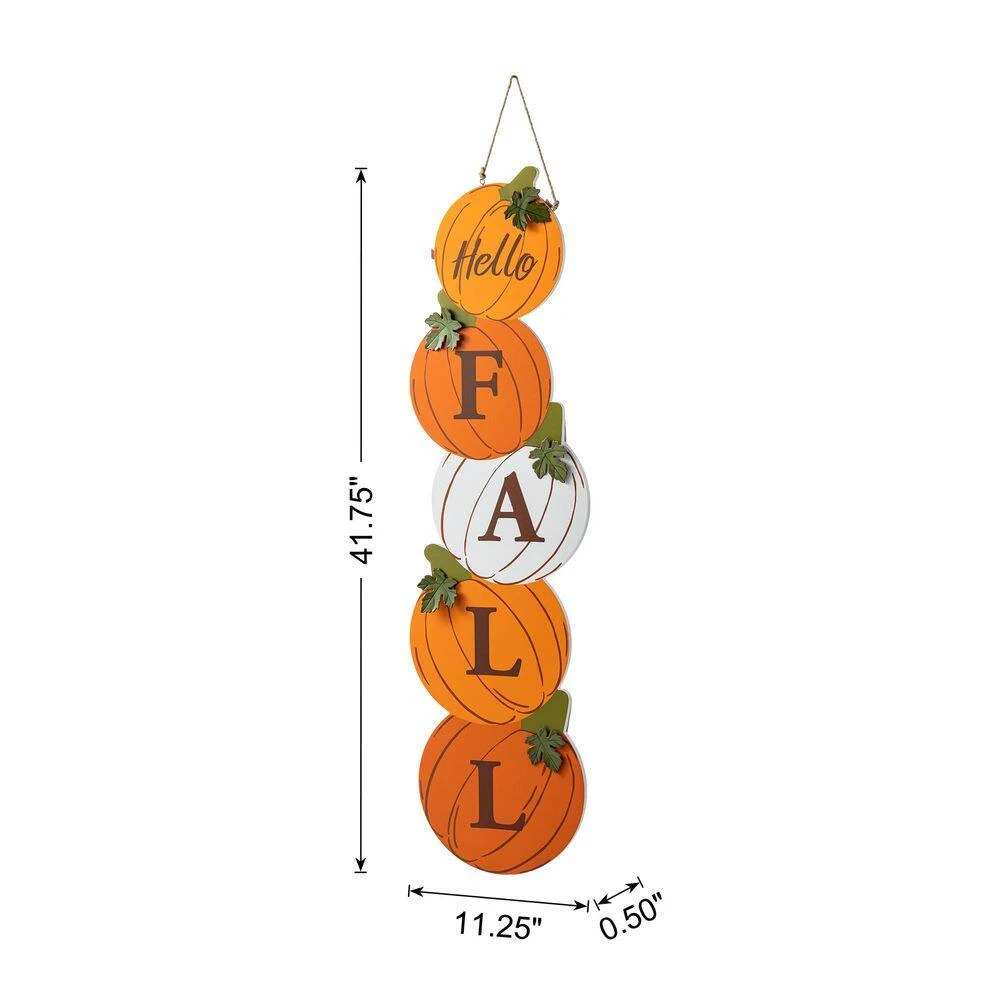 The 41.75 in. H Fall and Christmas Double Sided Wooden Pumpkin and Ornament Porch Sign is a versatile and festive decoration that celebrates both the autumn season and the Christmas holiday spirit. Crafted from durable MDF, this double-sided sign features a stack of pumpkins on 1-side, spelling out FALL with a warm Hello at the top, and on the reverse, 5-stacked ornaments that spell JOY. This sign is perfect for those who want to transition their decor smoothly from 1-season to the next, offering a delightful greeting for guests and passersby.
