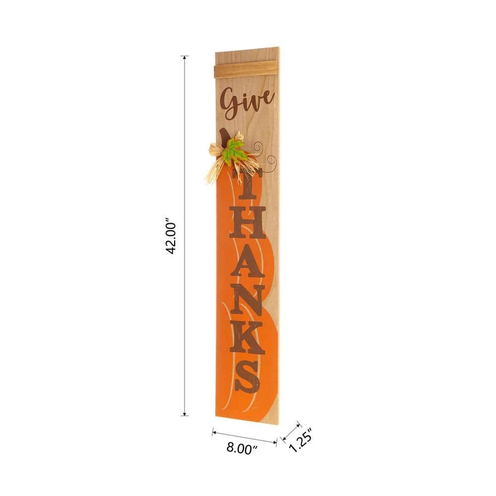 Against the background of autumn color, we chose the words Give Thanks as the core of the sign and added some harvest elements, such as pumpkin, maple leaf, corn and enjoy the joy of autumn harvest. It can be a Hanging porch decor or a porch leaner. No assembly required.