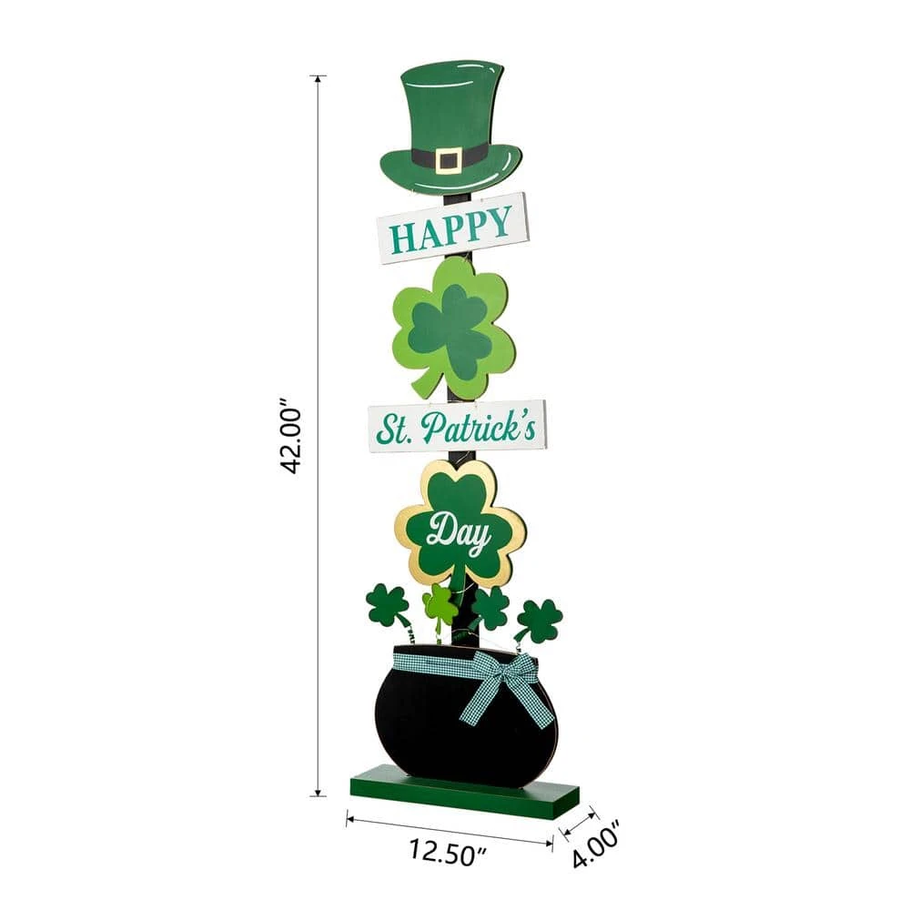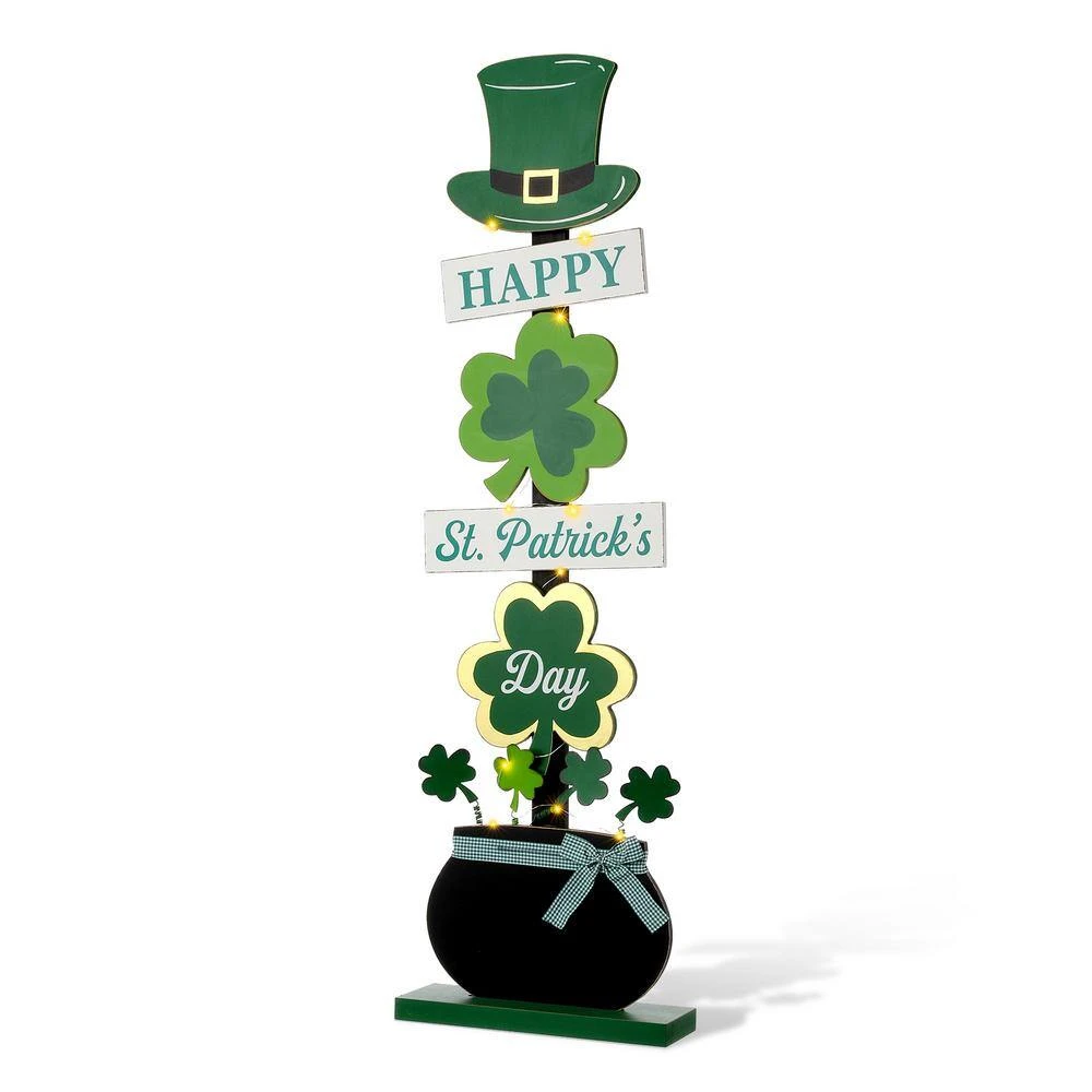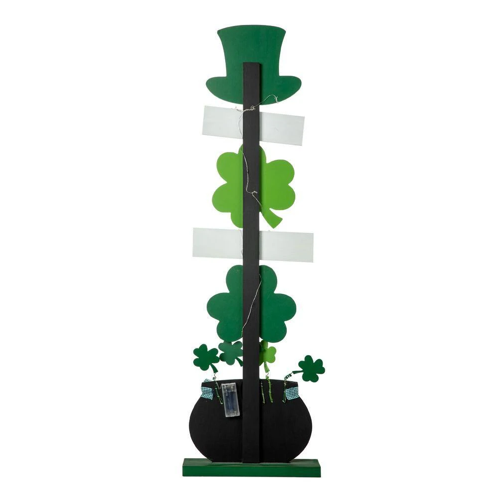 Lighted vertical St. Patrick’s wooden porch sign that reminds us about the fun of St. Patrick’s Day. Happy St. Patrick’s day is adorned with a leprechaun hat and shamrock. It’s the perfect addition to your St. Patrick’s Day decor.
