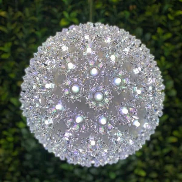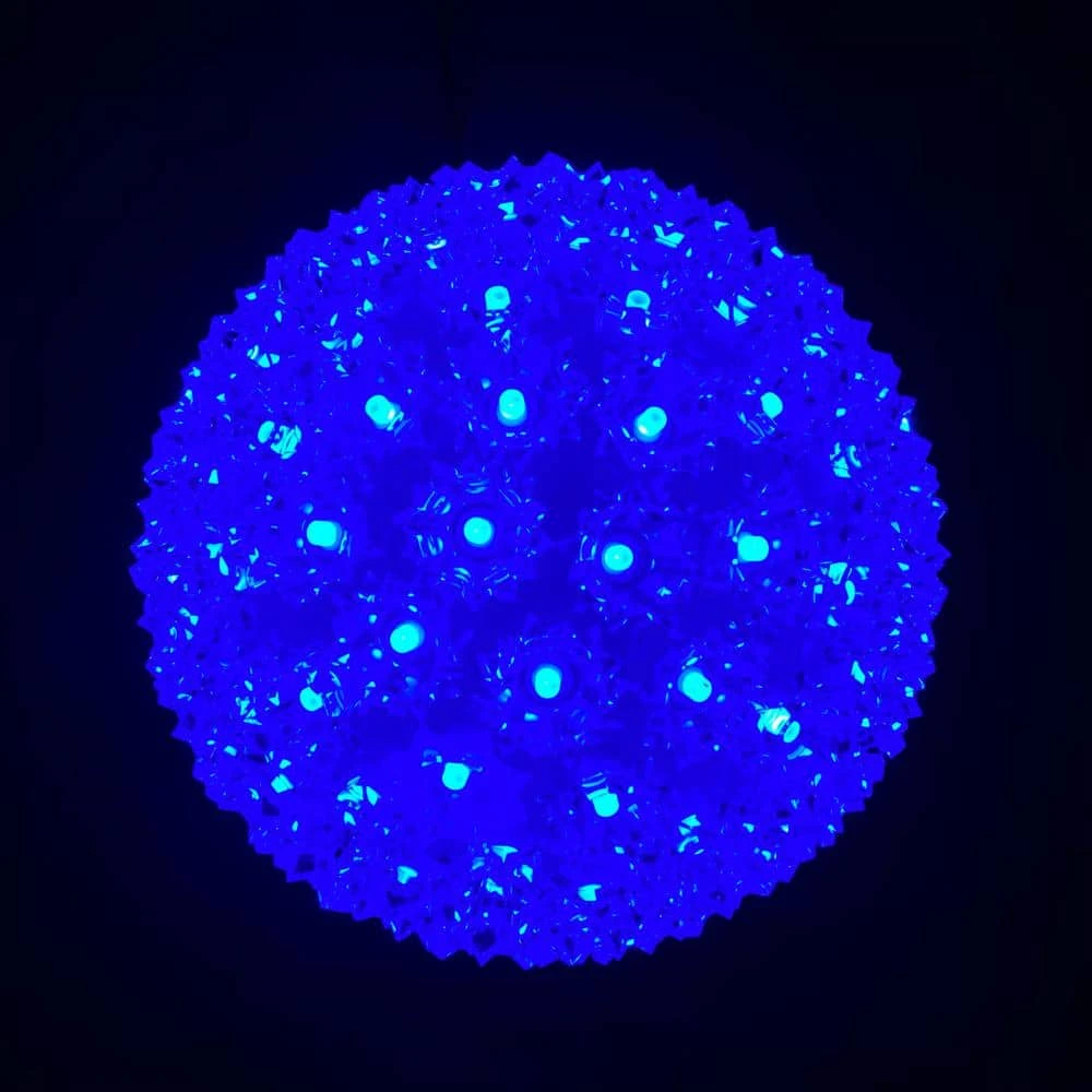This sphere is what you’ve been waiting for. Full color control with a simple to use remote. No Apps, No Hassle. This set has all the functions and features you will need, with eye popping FX to boot. Frosted RGB 5 mm lights. Features: LED Low Voltage UL approved for indoor or outdoor application. Versatile design allows you to use alone or combined with other decor. Contains 100 Frosted RGB LED 5 mm lights Remote functions: Jump, Fade, Flash White, Chase, Steady, Flash Out, and Wave. RF Remote control range is roughly 50 ft.
