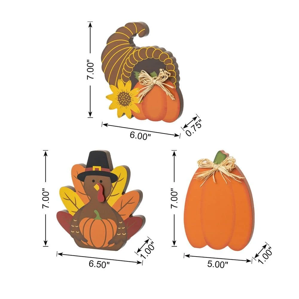 This wooden standing decor set adds a festive Thanksgiving touch with three charming icons: a pumpkin, a turkey, and a croissant. Perfect for tabletops, bookshelves, or cabinets, these pieces bring cheerful warmth to any space. Their cozy design helps create a welcoming holiday atmosphere wherever they’re displayed.