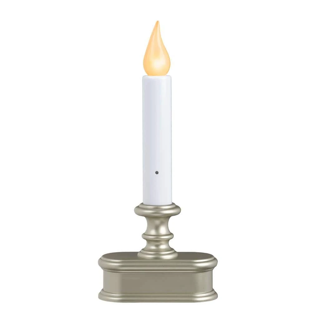 With a small pewter colored base and an amber LED, this window candle will beautify any home during the holiday season. And because it has a light sensor that automatically turns it on at dusk and off at dawn, 2 AA batteries will last the entire season (up to 45-days). Pick from 3 settings: off, flicker, steady on (no flicker). Now you can have the charm of a real candle in your windows without any of the danger that comes with an open flame and hot wax.