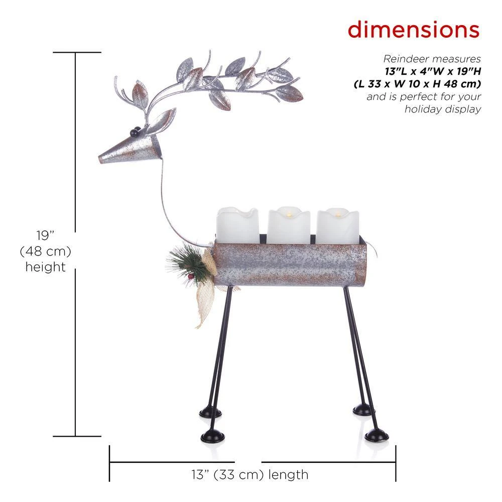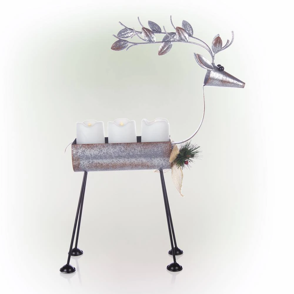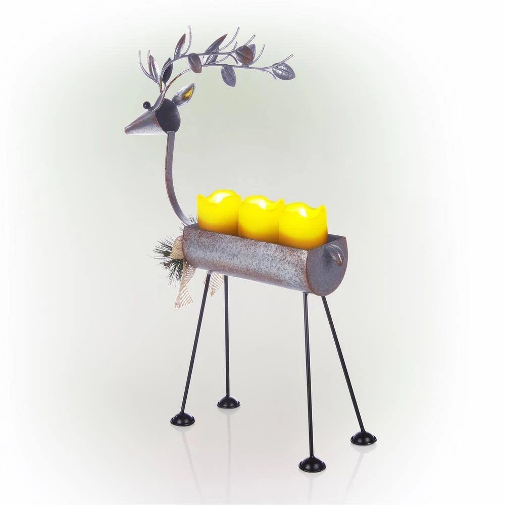 Give that holiday display a homespun touch with the Alpine Corporation Rustic Metal Deer Candle Decor with LED Lights! This gray metal structure has plenty of personality, formed into an adorable deer shape, with 3 warm white LED candles, winter greenery-inspired antlers and a burlap bow around the neck. While this decoration provides a blissful, warm light that is reminiscent of a simpler time, it is conveniently powered by 6 AA batteries, which are sold separately, and has an on/off/timer switch, so you don’t have to worry about lighting or blowing out troublesome and hazardous flames. Durably made so you can enjoy for many holiday seasons in the future, this faux candle display measures 13 in. x 4 in. x 19 in. so you can use it as a focal point both indoors and outdoors, and includes a one-year manufacturer’s warranty from date of purchase. Alpine Corporation is one of America’s leading designers, importers, and distributors of superior quality home and garden decor products. Alpine’s award winning in-house design team continuously develops new and innovative