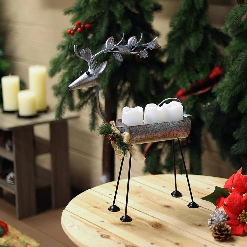 - Rustic holiday decor: a farmhouse-inspired faux candle decor in the shape of a deer, accented with winter greenery and a burlap bow