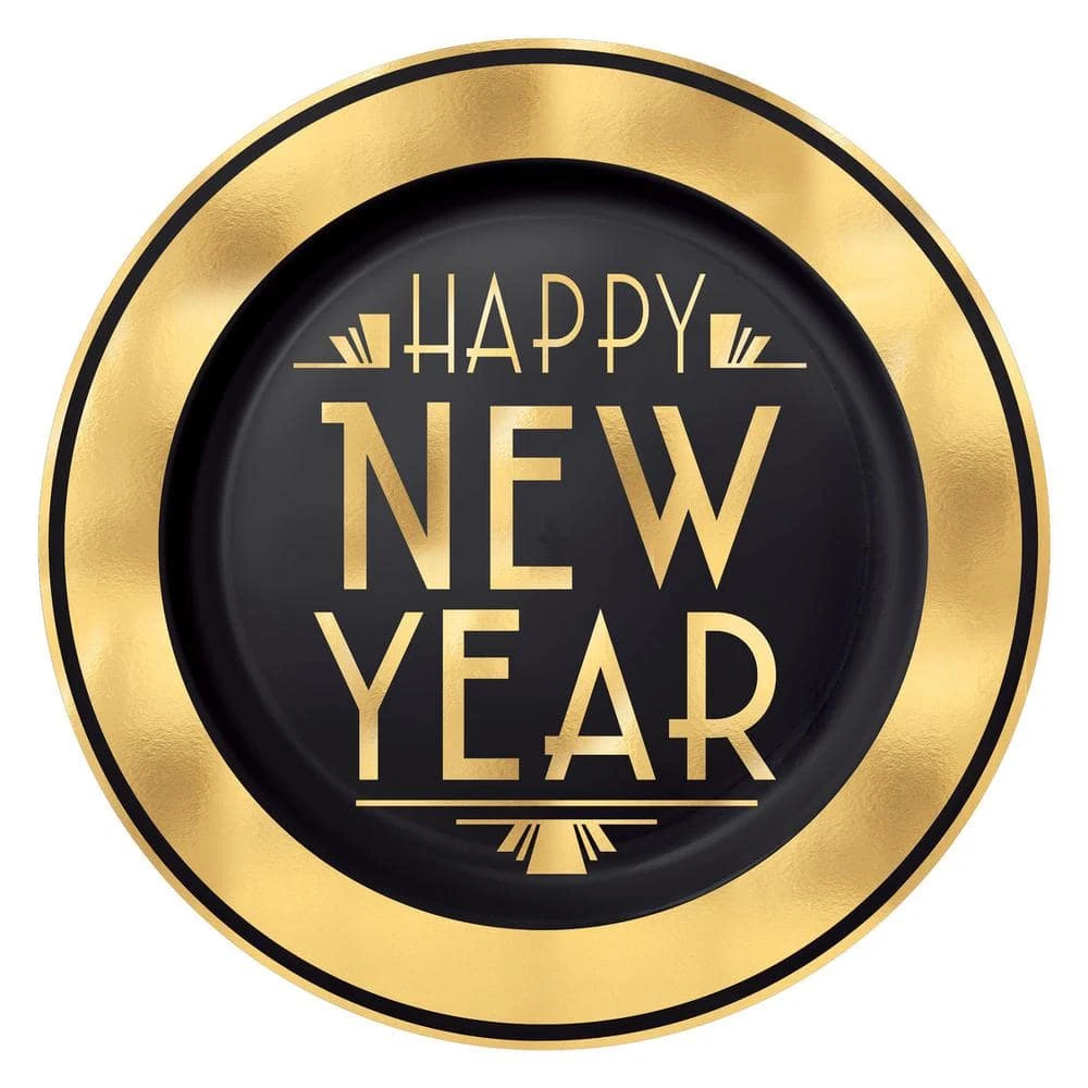 If you’re going to dress up for your last party of the year don’t leave your table settings out of the fun. Each premium plate features a shining gold Happy New Year message and a matching gold border. Pile these plates high with your favorite foods to end the year on a good note.