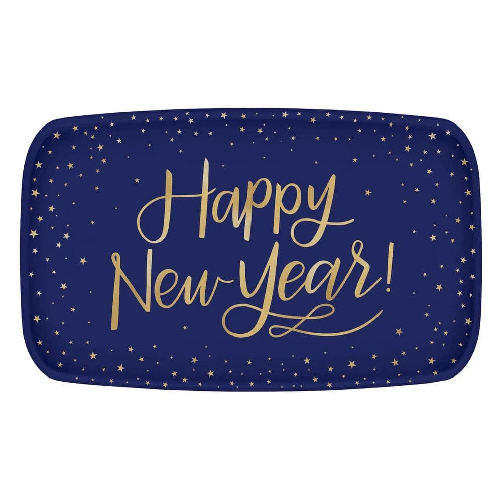 Get ready to countdown to the new year with some tasty snacks and this New Year’s Eve Rectangular Coupe Platter. Each navy platter features the message Happy New Year in shiny gold font as well as gold stars. As sturdy as they are cute, you don’t have to hesitate to pile this platter high with cookies, candies or appetizers.