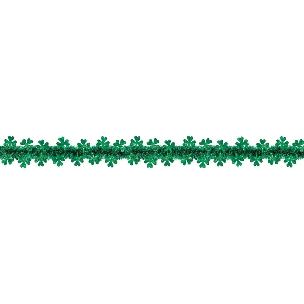 Create up a lovely clover focal point with our green Shamrock Tinsel Garland. Spread holiday cheer with Shamrocks. Our Shamrock Tinsel Garland can be used to create a decorative focal point border around doorways and windows, circle trees and plants, or line the mantel. This green garland feature a tinsel base with shimmery green die-cut foil shamrocks that reflect light. Join several together to create a fun doorway curtain to welcome your guests.