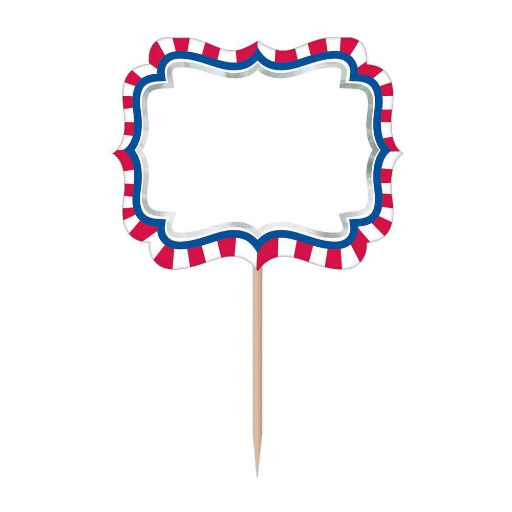 Add some flare to your next event with our Patriotic personalizable picks. These wooden toothpicks feature small white paper labels with a red, white, and blue striped border that can be personalized. These picks are perfect for labeling assorted sandwiches or any of your favorite treats.