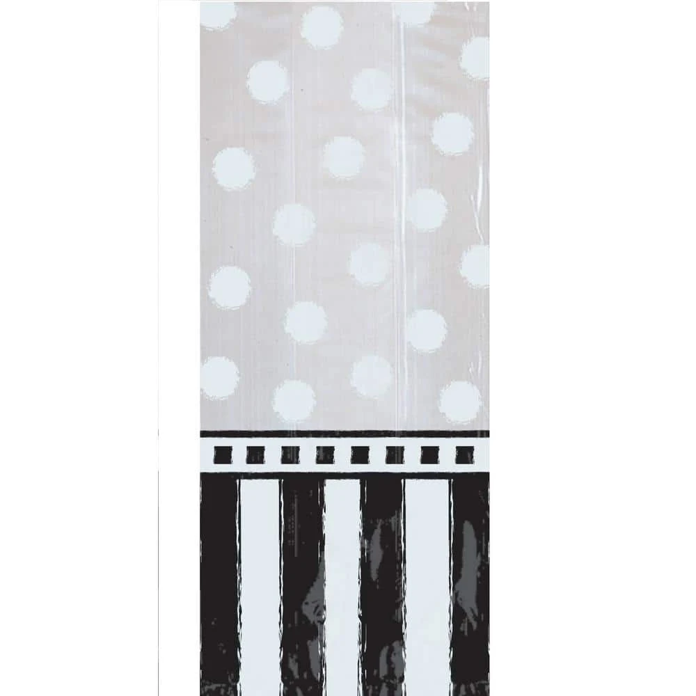 Send your guests home happy with these black and white treat-bags. These treat-bags feature black and white stripes and opaque white polka dots and include are black twist ties. Each pack contains 20 cellophane favor-bags. Contains 10-packs.