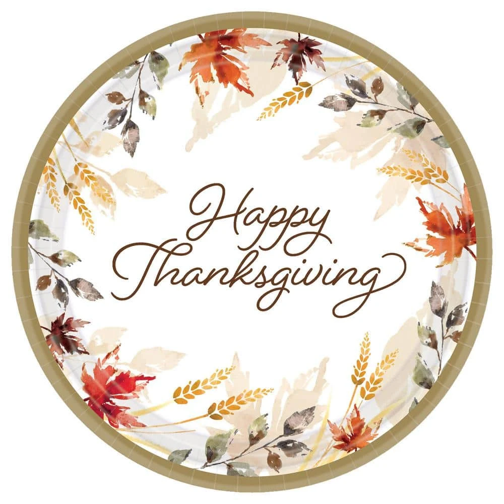 If you’re looking to gobble up some Thanksgiving dinner, set your table with our Classic Thanksgiving Plates. Each plate features a border of harvest grain, fall leaves and Happy Thanksgiving message in a simple script. Pile these sturdy plates high with your favorite foods.