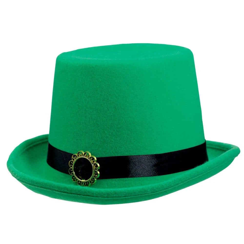 You’ll look just like a leprechaun when you wear this plush green St. Patrick’s Day Felt Top Hat. Straight out of an old Irish tale, this St. Patrick’s Day Felt Top Hat is the perfect polished party outfit accessory. The classic green top hat design has a reinforced, upturned brim. The black hatband is adorned with a brilliant gold plastic buckle.
