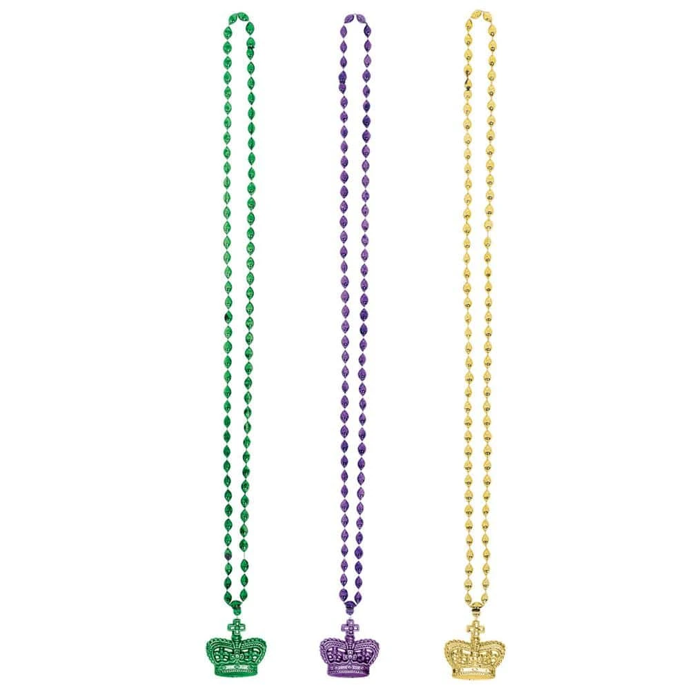 Crown yourself king or queen of Mardi Gras with these crown pendants on beaded necklaces. You’ll feel like royalty while wearing these crown pendants in classic Mardi Gras colors. Whether gold, green or purple is your color, you’ll be all set.