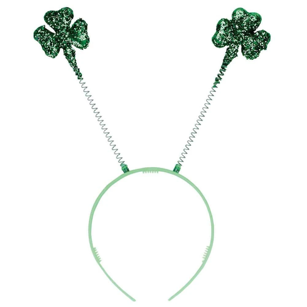 Bop to Irish Ballads this St. Patrick’s Day with our green Glitter Shamrock Head bopper Headband. Put a party on your head with our Glitter Shamrock Head bopper Headband. Our Glitter Shamrock Head bopper has two green sparkling shamrocks attached by long coils. This comfortable green headband has side combs to keep the head bopper snug all day as you bop along the parade route or party hardy. This affordable yet stylish accessory is great for yourself or to pass out to your guests.