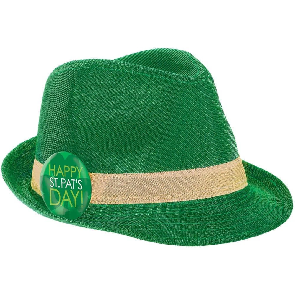 Have fun in our festive St. Patrick’s Day Shimmer Fedora in green. You’ll look as stylish as St. Paddy himself in our St. Patrick’s Shimmer Fedora Hat. This timeless fedora shaped hat is made of a shimmery green fabric and has a gold ribbon hatband. A fun summary is attached to the side with a large green shamrock and the message, Happy St. Patrick’s Day making for a fun finishing touch to your holiday outfit.