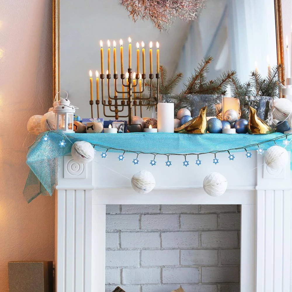 - Light up any space for chanukah with this brightly colored star of david 20-lights string
