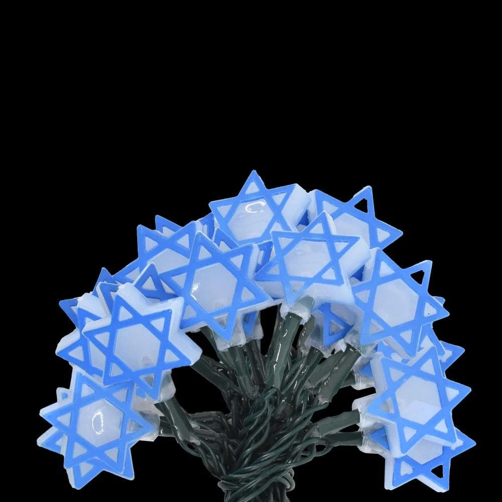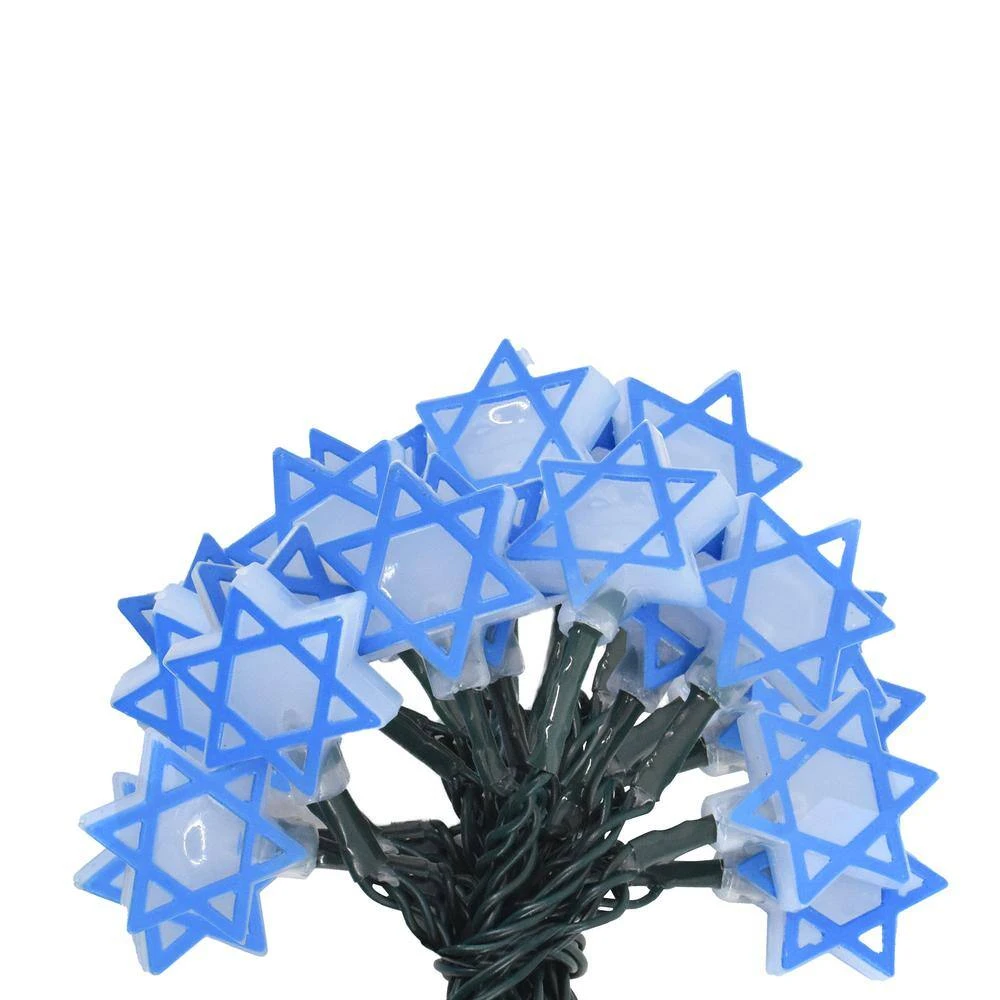 Decorate for Chanukah with PRODUCTWORKS Ultra LED string lights with the Star of David. Features 20 ultra LED bulbs with festive Star of David symbols. This holiday light strand measures 97.5 in. long so you can decorate any space to your liking. Decorated with 20 Star of David light bulbs, this light strand will be sure to brighten any space with Hanukkah cheer. Equipped with a steady on/off operation and includes a twinkle function. Measuring 97.5 in. long, These battery-operated lights are powered by 2 AA batteries (sold separately) and are intended for indoor use only.