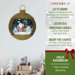 24 In. Christmas Musical Ornament Shadowbox With Santa Scene, Cascading Snow And Holiday Songs