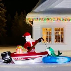 4.4 Ft. X 9.8 Ft. Pre-lit Santa Fishing On Yacht Christmas Inflatable