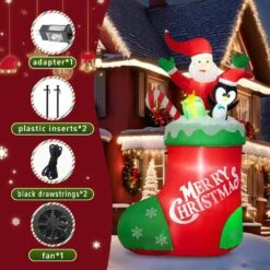 7 Ft. X 4 Ft. Outdoor Christmas Decor Santa On Green Sleigh Inflatable With LED Lights