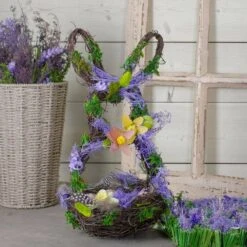 Northlight 14.5″ Purple And Green Artificial Floral Bunny Shaped Basket