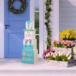 24 In. H Double Sided Wooden Porch Decor Easter And July 4th