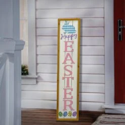 42 In. H Wooden Double Sided Happy Easter And Welcome MDF Porch Sign