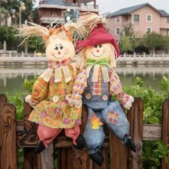 24 In. Sitting Scarecrow Sister And Brother Set With Red Hat