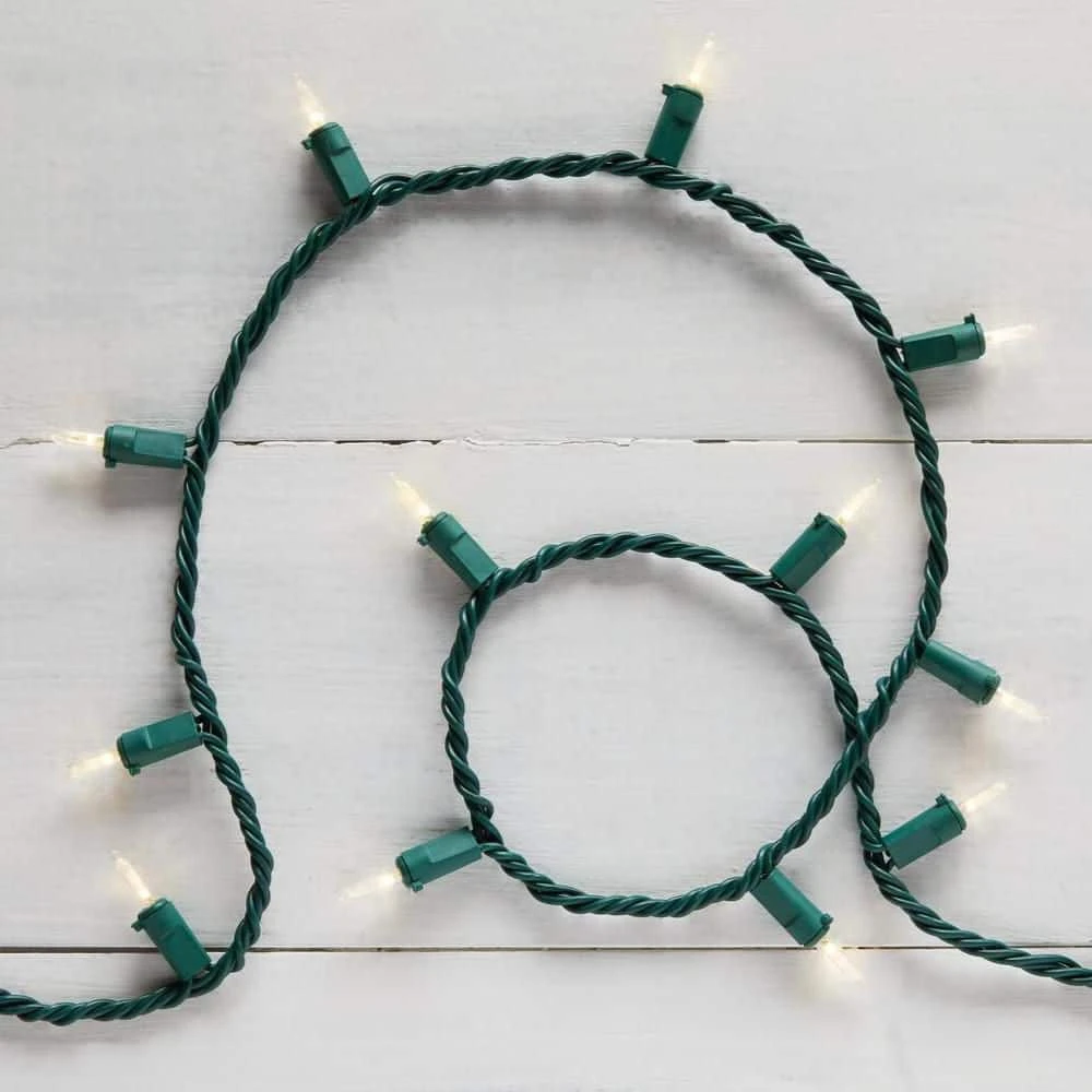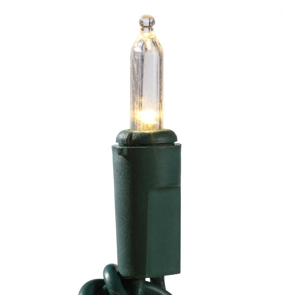 Create a dazzling display with these Home Accents Holiday 100 Count Warm White Steady Lit Super-Bright Mini LED Lights. These mini LED lights are super bright, flicker free and cool to touch when lit. There is 25 ft. 10 in. of lighted length to use along gutters, in trees, along fence or anywhere you want to create an outdoor light show. These lights can also be used indoors along railings or wall trimmings. For ideal tree lighting, use 100 lights for every 1 ft. of tree. They connect up to 25 sets on 1 outlet for an even more dramatic display of light. These cool white mini LED lights are long lasting up to 25,000 hours (up to 15 holiday seasons). For a reliable and consistent lighting experience, the steady lit-technology enables your lights to stay lit even if a bulb gets damaged, is missing or burns out. These mini lights have a green wire and include two spare bulbs and two fuses. These lights come with a 3 year warranty, so you’ll have a merry holiday season year after year.