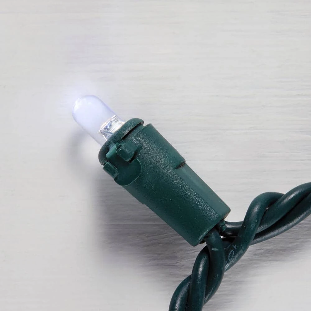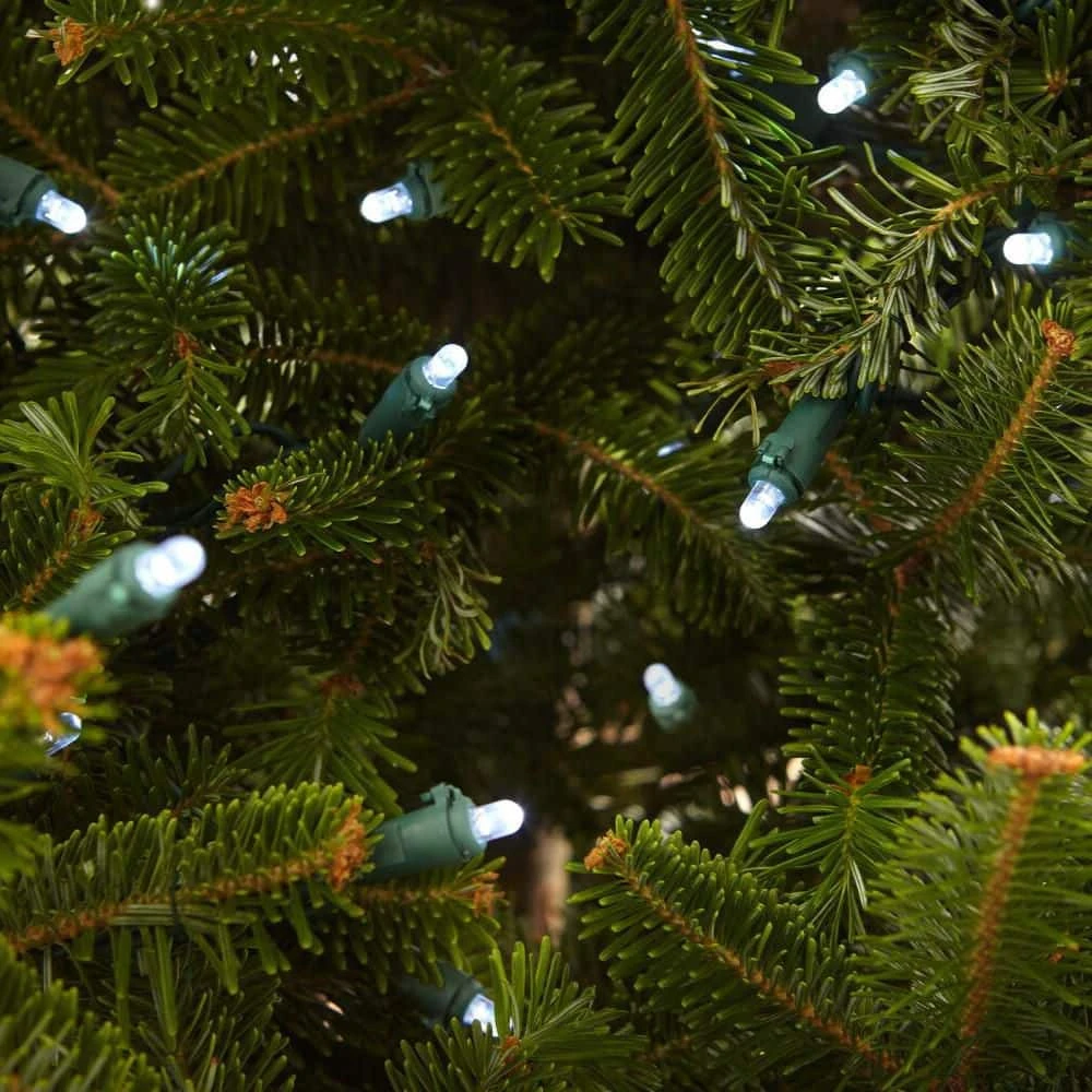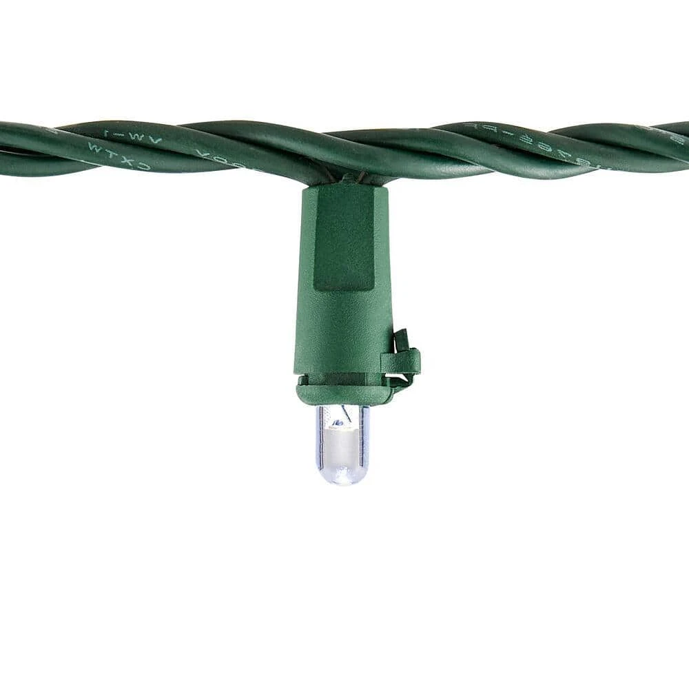 Show off your seasonal spirit with this Home Accents Holiday 200 count Cool White Dome LED light set. The shining LEDs stay cool to the touch when lit. The generous 58 ft. lighted length on green wire makes it simple to trim your tree or adorn your banister creating a winter wonderland. For ideal tree lighting, use 100 lights for every 1 ft of tree. With a versatile design, this dome LED light set can be connected end-to-end with up to 22 sets on 1 outlet for a lively display. These dome lights are long lasting up to 25,000 hours (up to 15 holiday seasons). This light set includes four spare bulbs and two fuses. These lights also come with a 3 year warranty, so you’ll have a merry holiday season year after year.