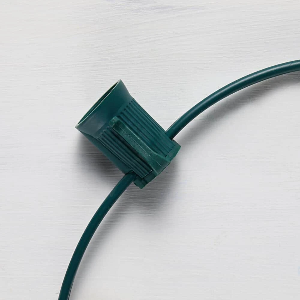 Decorate for whatever the winter weather brings with this Home Accents Holiday 500 ft. commercial-grade C9 stringer light set. The heavy-duty, 18-gauge wire is designed for outdoor use, easily wrapping around trees, awnings and fences to bring a bit of Christmas cheer. Sockets spaced 12 in. apart offer compatibility with most C9 screw-in light bulbs (bulbs not included) ensures an easy setup and lasting use throughout the seasons. Green wire blends seamlessly with trees and bushes for a near-invisible look. A convenient spool makes this light string simple to store between the holidays.