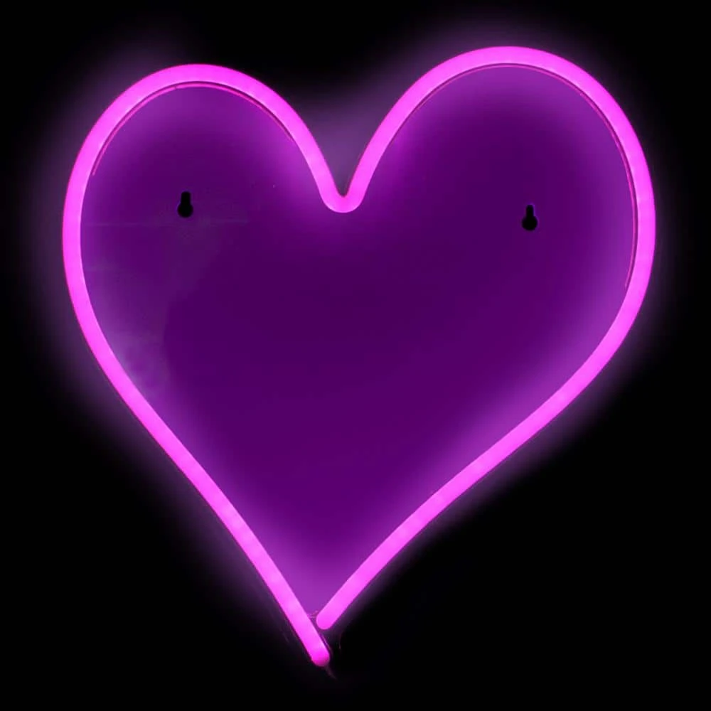 Light up your window girl cave or kid’s bedroom with our modern neon style lighted silhouette decoration. This classic pink heart comes ready for hanging with keyhole hooks at the top and may be hung on a wall or used a window sign. Great for Valentine’s Day or Sweetest Day parties. Product Features: Color: pink bulbs/white wire. LED bulb type: SMD 2835. Approximate thickness: 8 mm Approximate width: 11 mm 6.75 ft. lead cord. Double-sided design. LED lights use up to 80% less energy. Super bright vibrant bulbs. Bulbs stay cool to the touch. Additional Product Features: UL approved for indoor use only. Cannot be connected together with other lighted items. Comes ready-to-hang with 2-keyhole hooks at the top. Suction cups and hanging hardware not included. Class 2 power supply. AC adapter is raintight. Input: 100-Volt to 240-Volt 50/60 Hz. 25 Amp, Output: 5-Volt. 67 Amp 5-Watt. Dimensions: 13.5 in. H x 12.5 in. W x 0.5 in. D. Material(s): plastic/silicone/wire/metal.